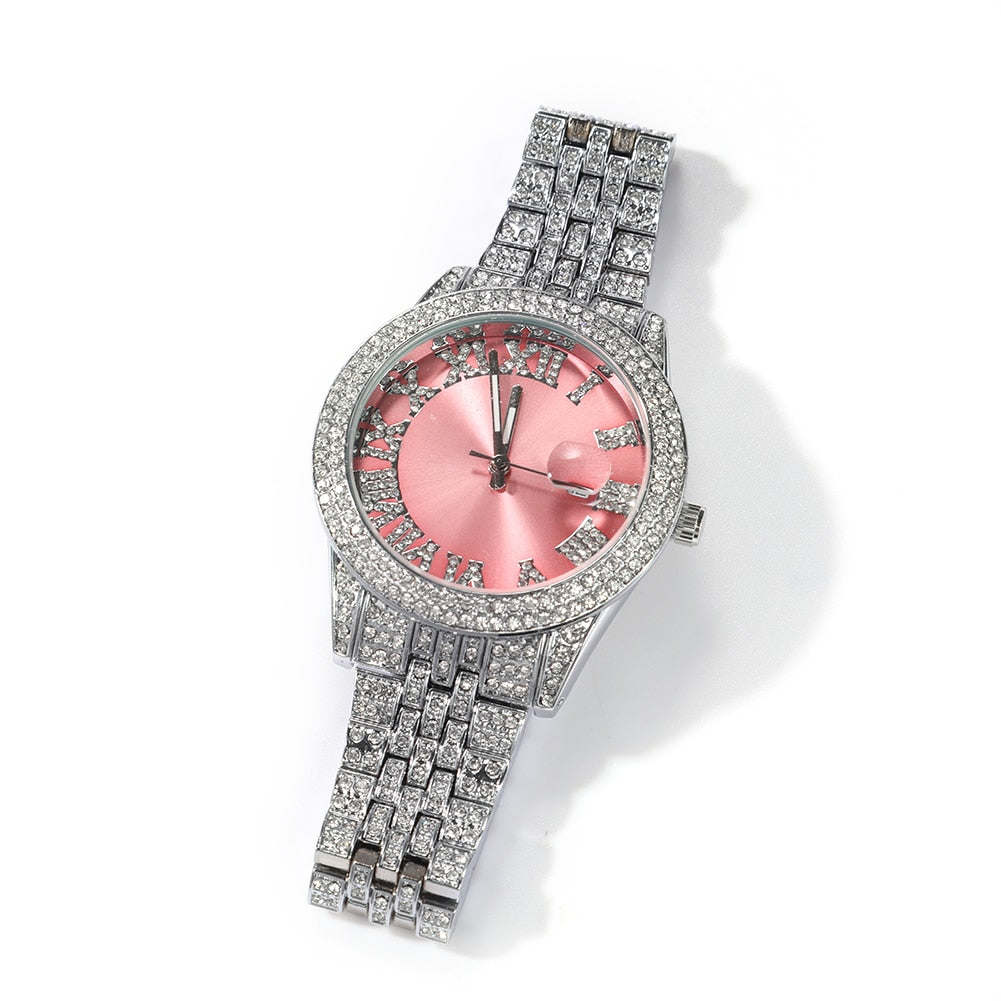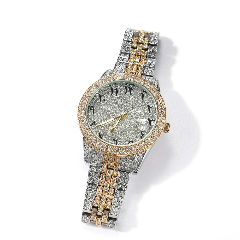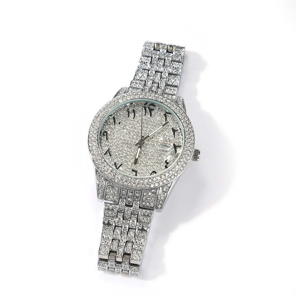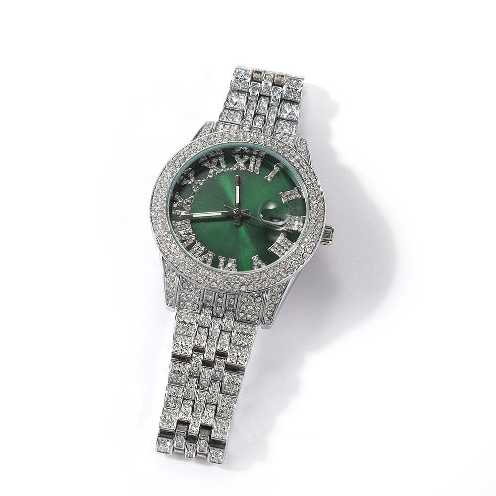 Hip Hop Full Iced Out Full Drill Men Watches Stainless Steel Fashion Luxury Colorful Rhinestones Quartz Square Business Watch