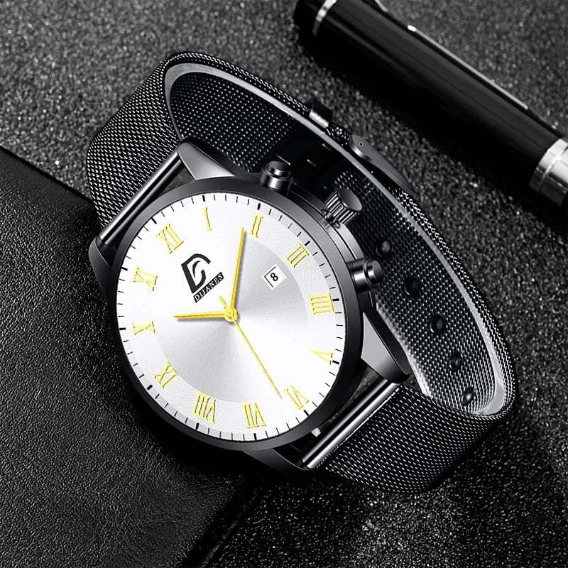 Luxury Fashion Men's Minimalist Watches Luxury Stainless Steel Mesh Belt Quartz Watch Men Business Casual Watch