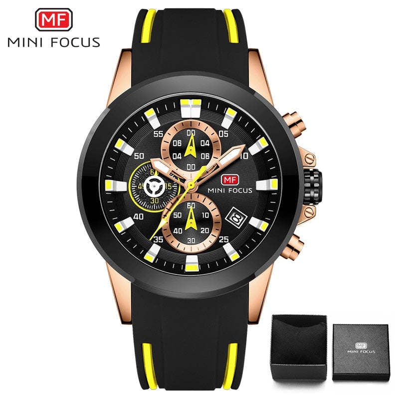 MINI FOCUS Chronograph Mens Watches Brand Luxury Casual Sport Date Quartz Silicone Wristwatches Waterproof Men's Wrist watch Man