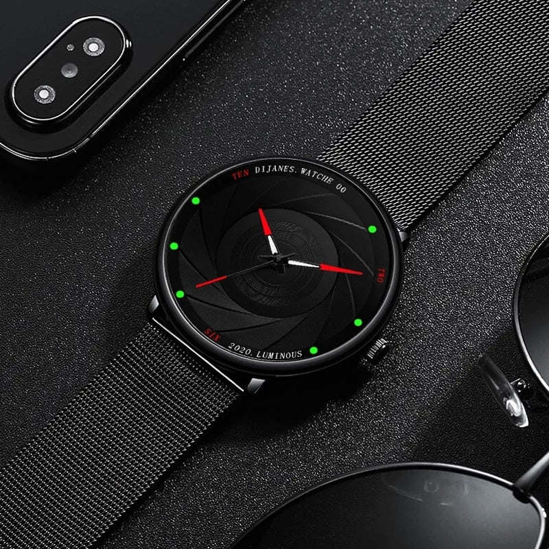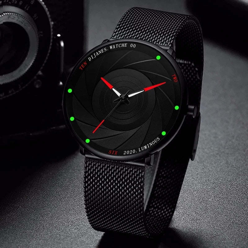 Minimalist Men's Watches Ultra Thin Stainless Steel Mesh Belt Quartz Wrist Watch Men Business Watch