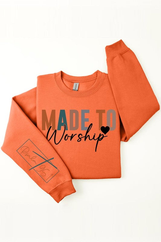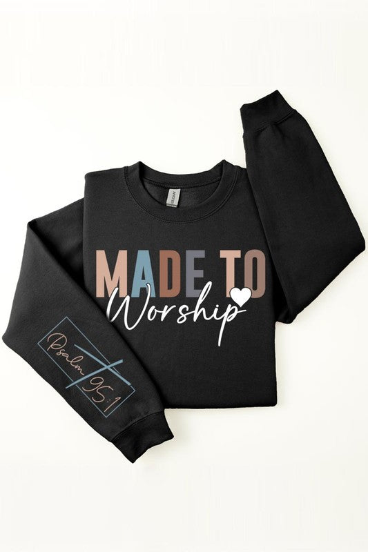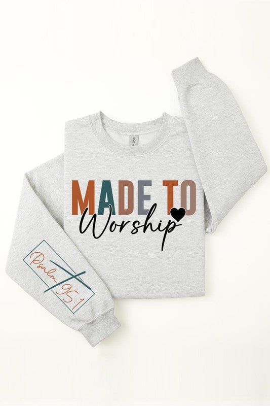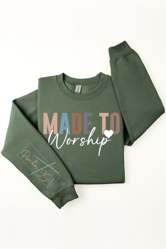 Psalm 95:1 Made To Worship Jesus Christian Sleeve Printed Graphic Fleece Sweatshirts.