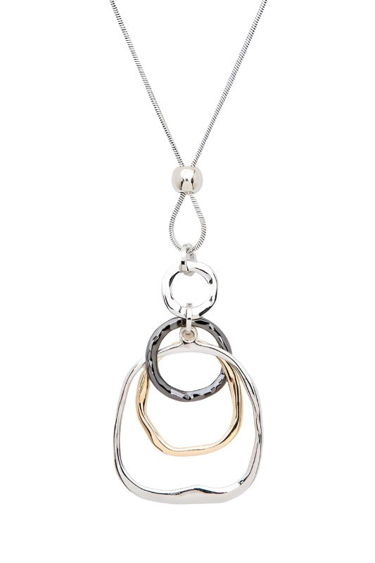 Introducing our 2 Tone Pendant Long Necklace Set, a harmonious blend of elegance and contemporary style. This set is designed for those who appreciate the beauty of contrast and the versatility of a long necklace.