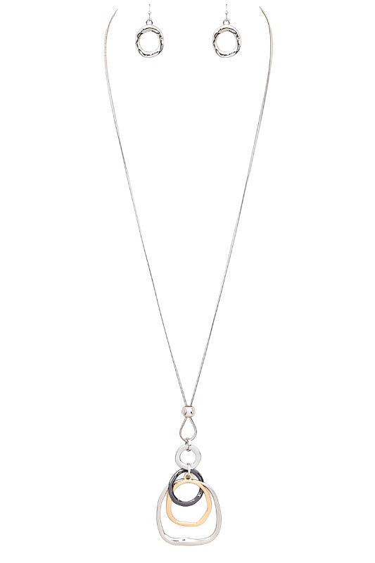 - Two-Tone Design: The centerpiece of this set is the two-tone pendant, which combines two distinct metal finishes. The interplay of colors creates a versatile accessory that complements a variety of outfits.