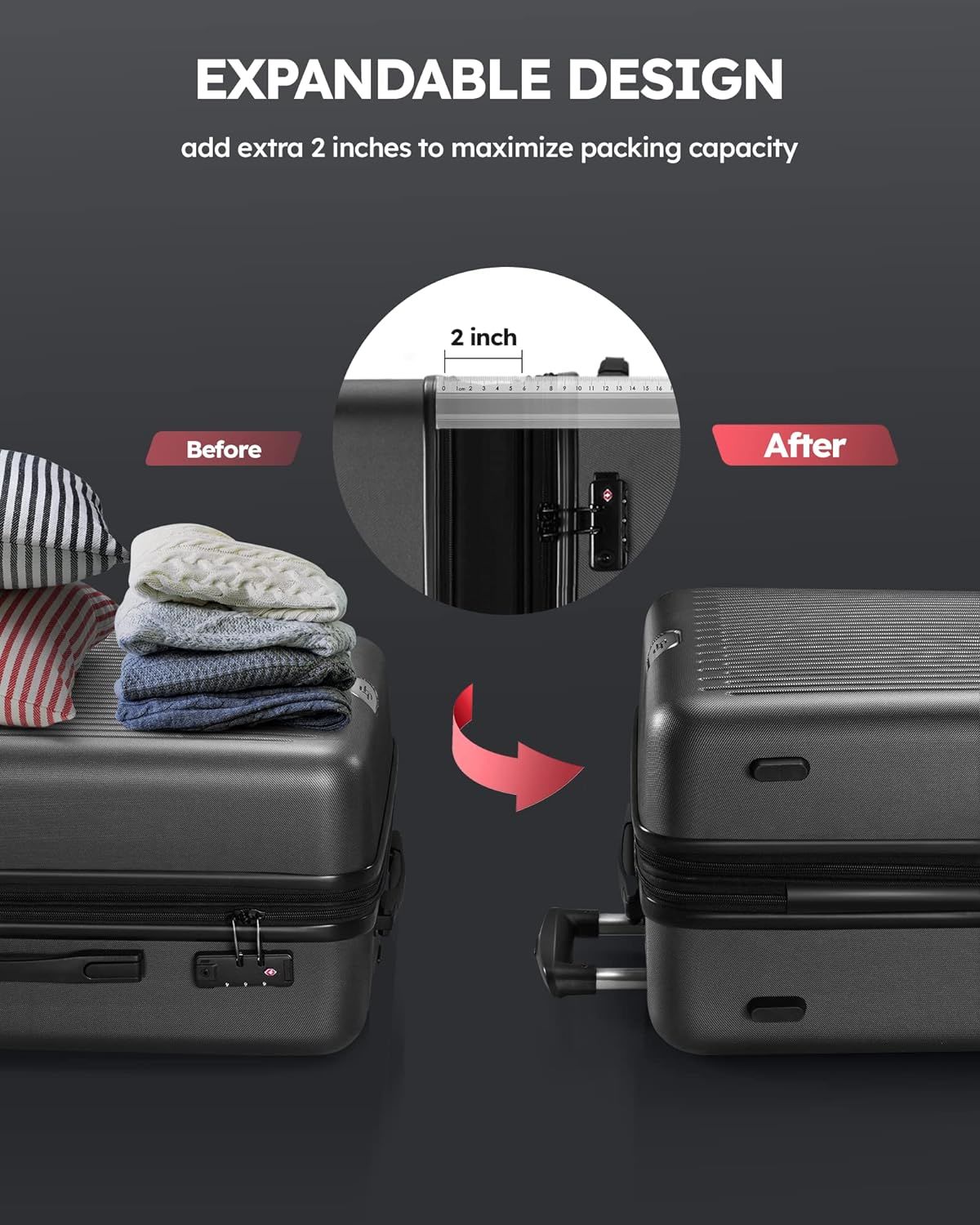 Quality Material and Durability: Benefits of the hard shell ABS material, the luggage sets are lightweight, durable and sturdy, which is much needed with travel. These suitcases are perfect for carry-ons and long travel needs.