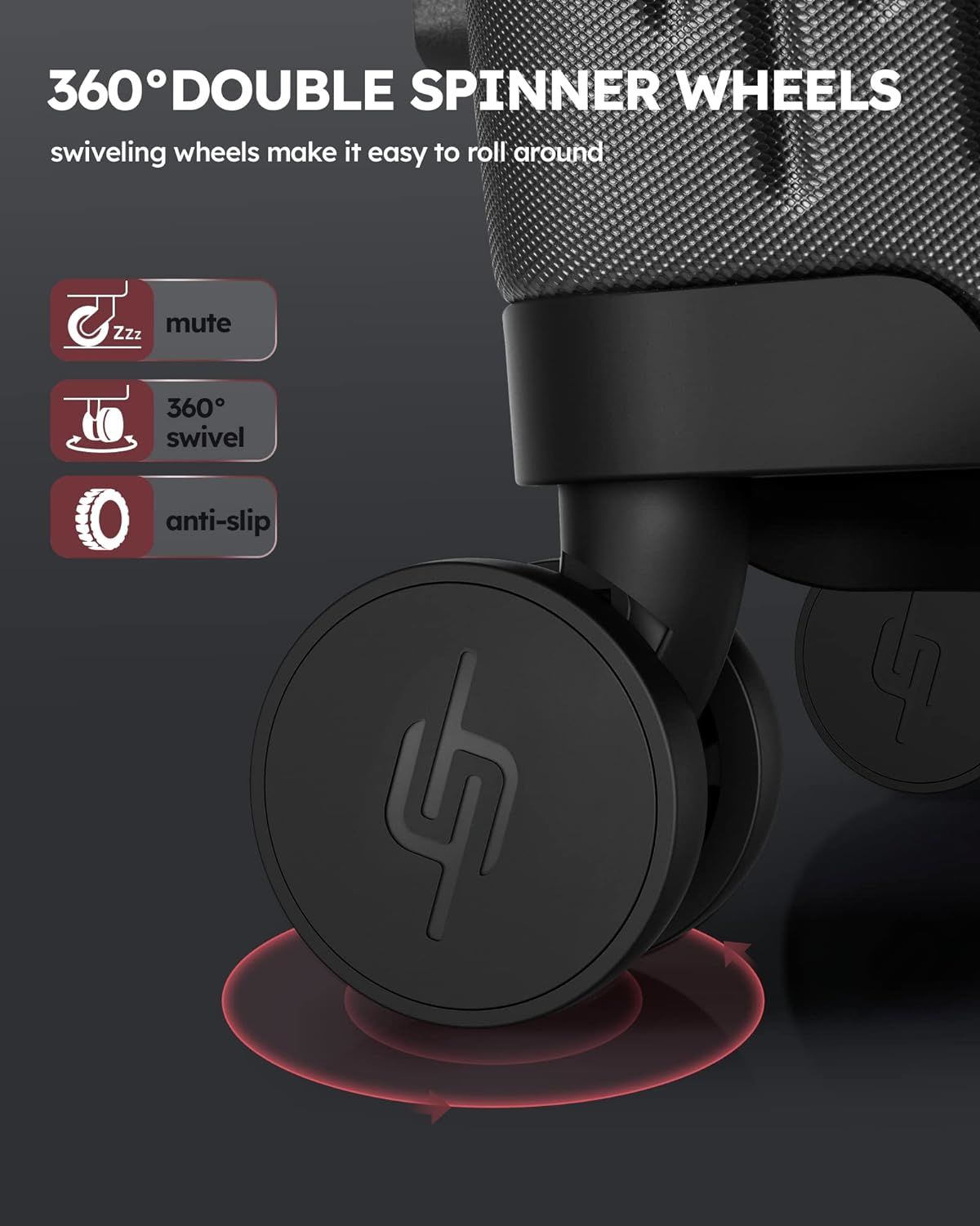 Telescoping Handle and Double Spinner Wheels: The 3-step telescoping handle goes up and down and fixes quickly with a push button. The luggage set comes with 4 double spinner wheels that can roll 360 degrees smoothly for easy maneuverability at airports and train stations.