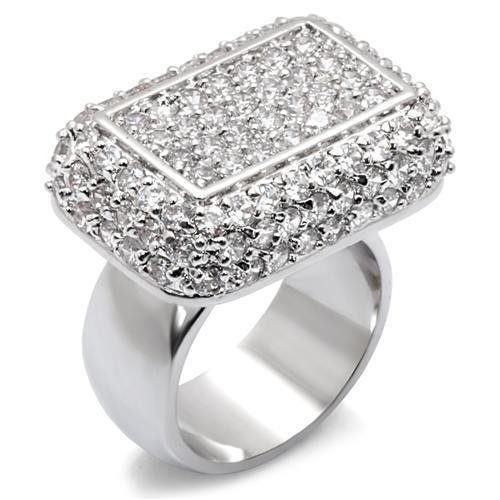 7X099 - Rhodium Brass Ring with AAA Grade CZ in Clear