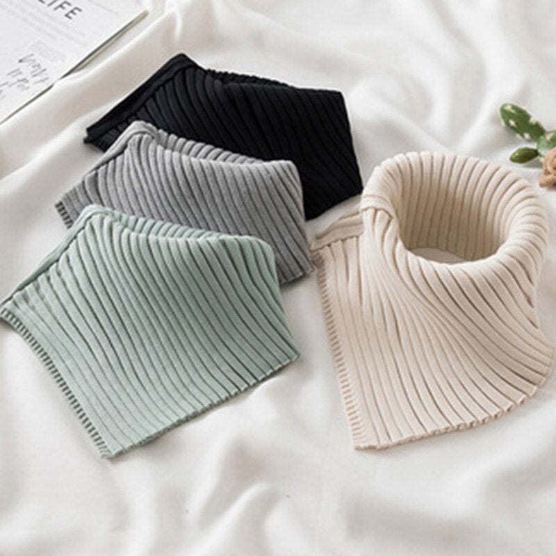 Autumn Winter Women's Scarf Wild Warm Protect Cervical Spine Stretch Knitted Fake Collar Wool High Neck Pullover Bib Female i39