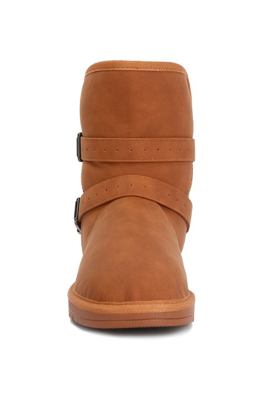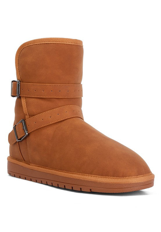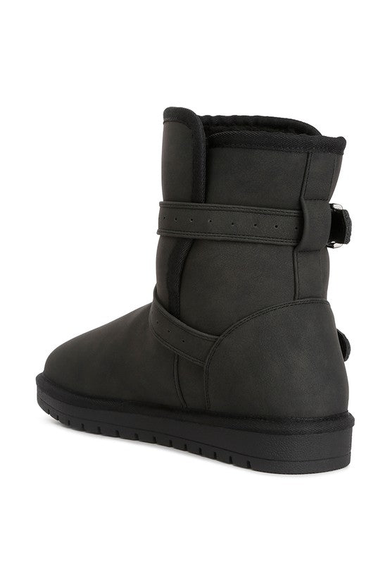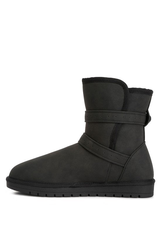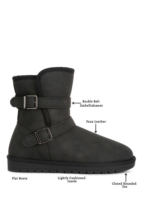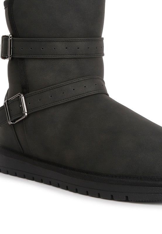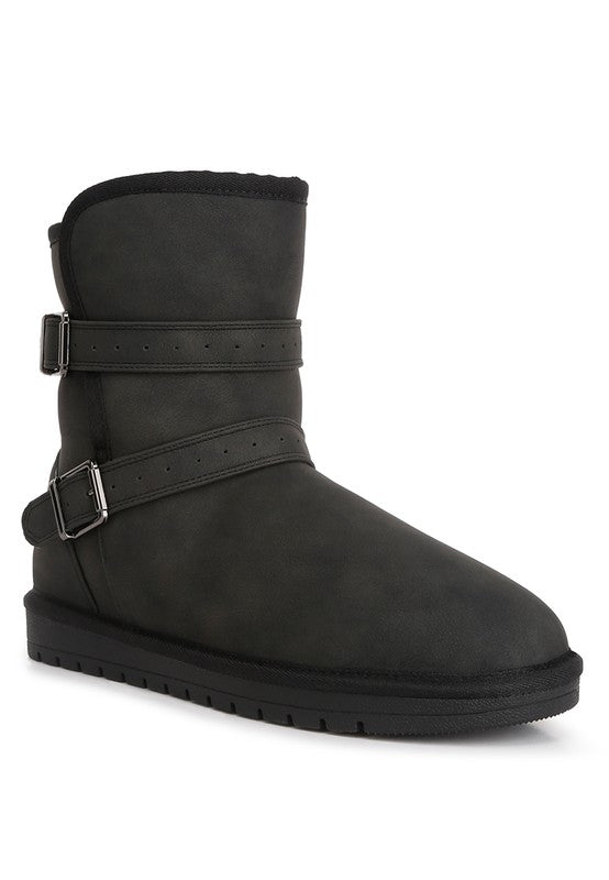 This pair of ankle length boots come with a unique dual metallic pin buckle closures. The tongue and the collar of the pair comes with an extra lining for a sleek finish. With a comfortable and utilitarian design these are perfect for days when you wish to look put together and stay comfortable.