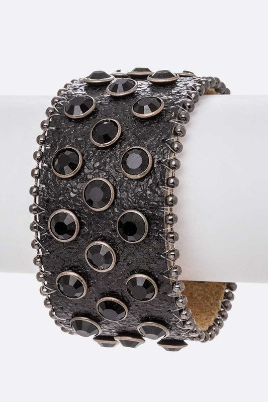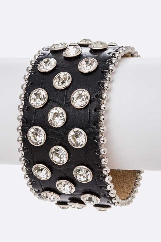 Crystal Studds Croc Embossed Leather Cuff