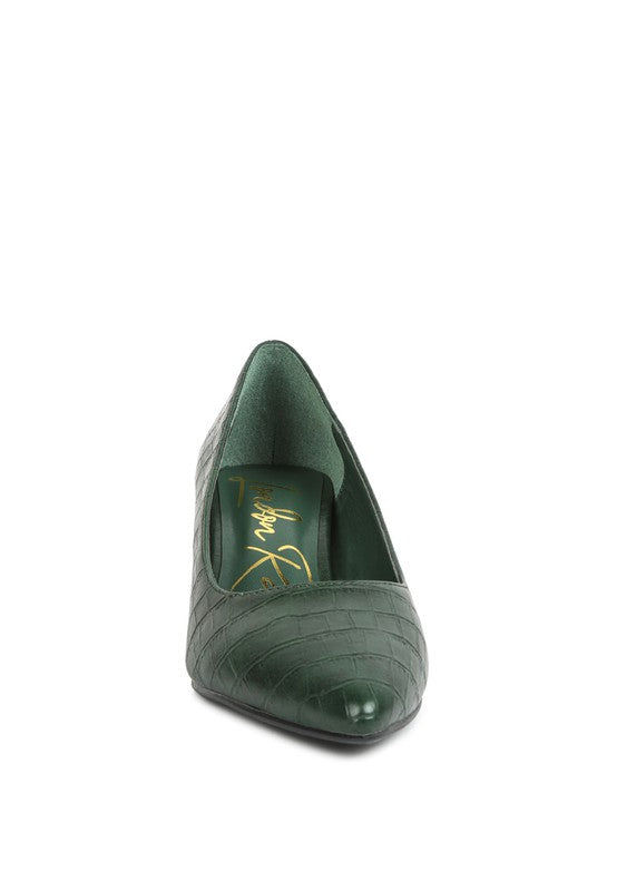 A classic style of pumps and some elevation with the metallic heel detail makes these pump shoes a must-have indeed! The beautiful croc texture makes them look stylish while the soft padded insoles offer comfort to feet. The pumps are perfect as shoes for work and plat and would make great transition shoes as part of your shoedrobe!