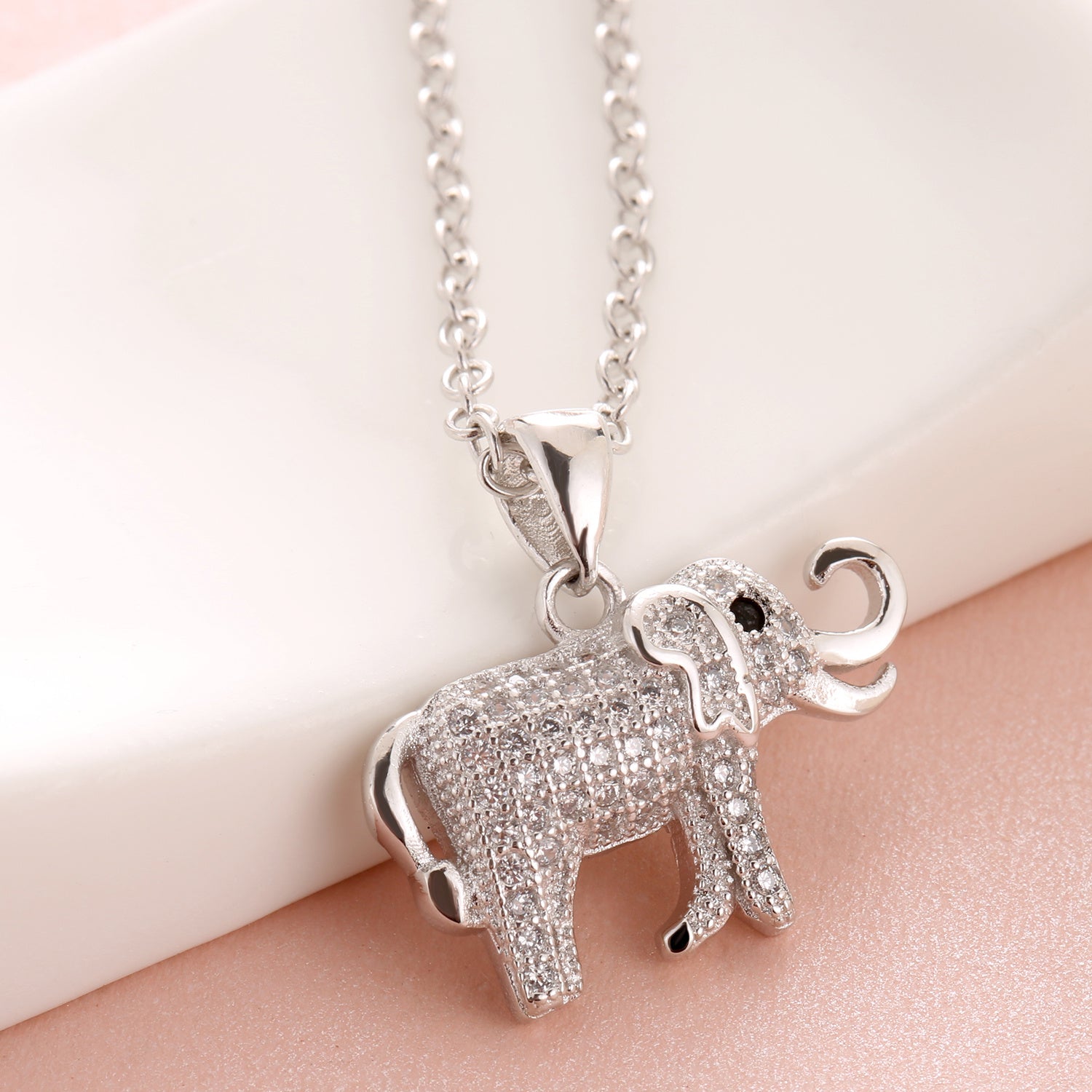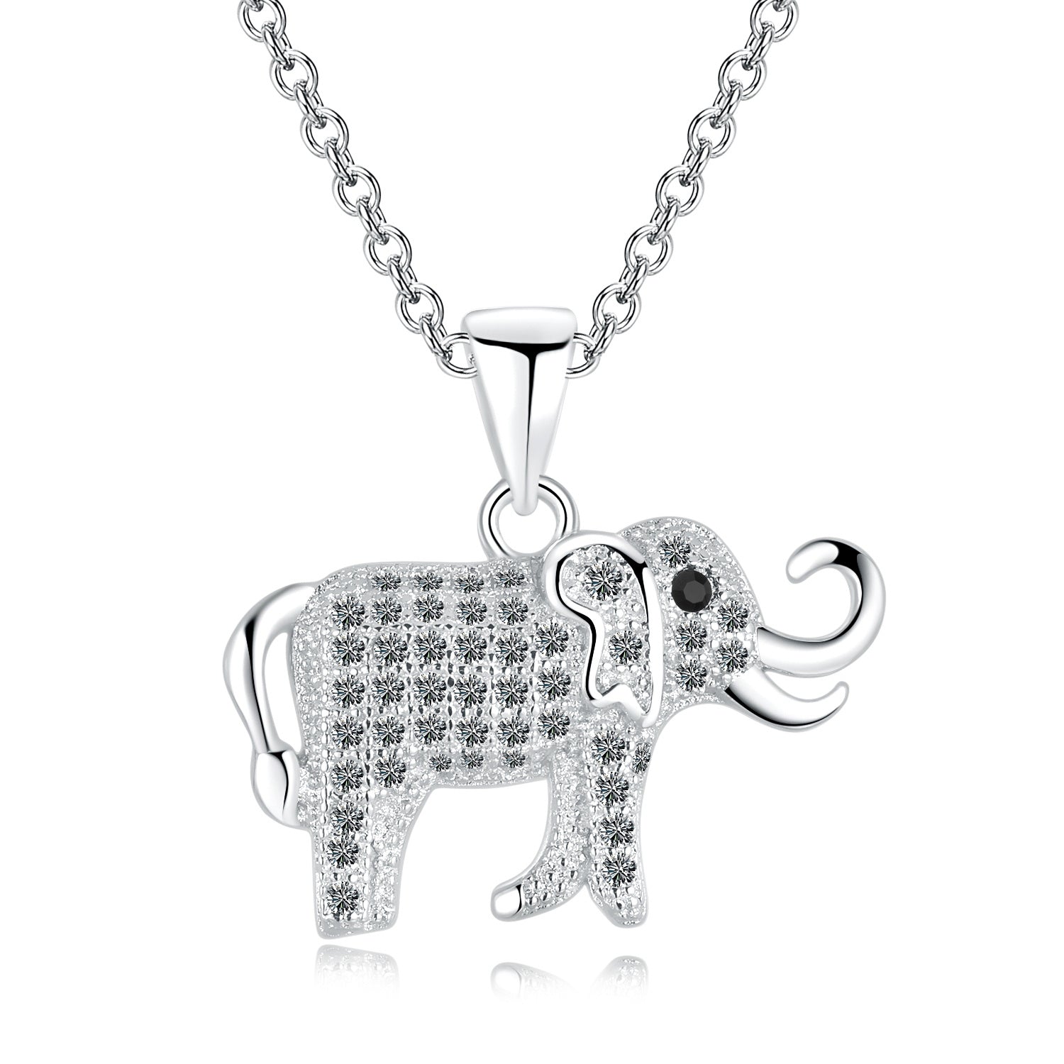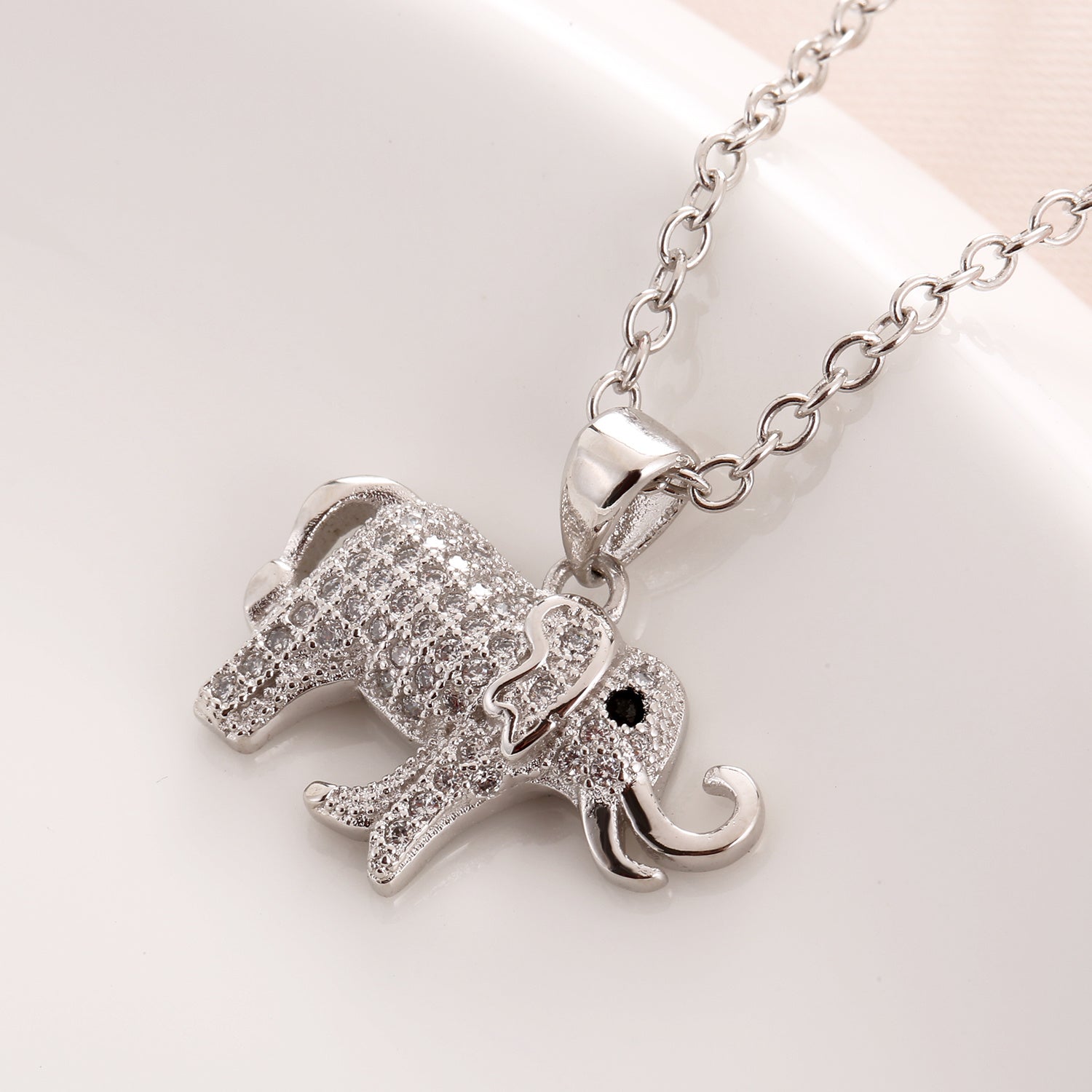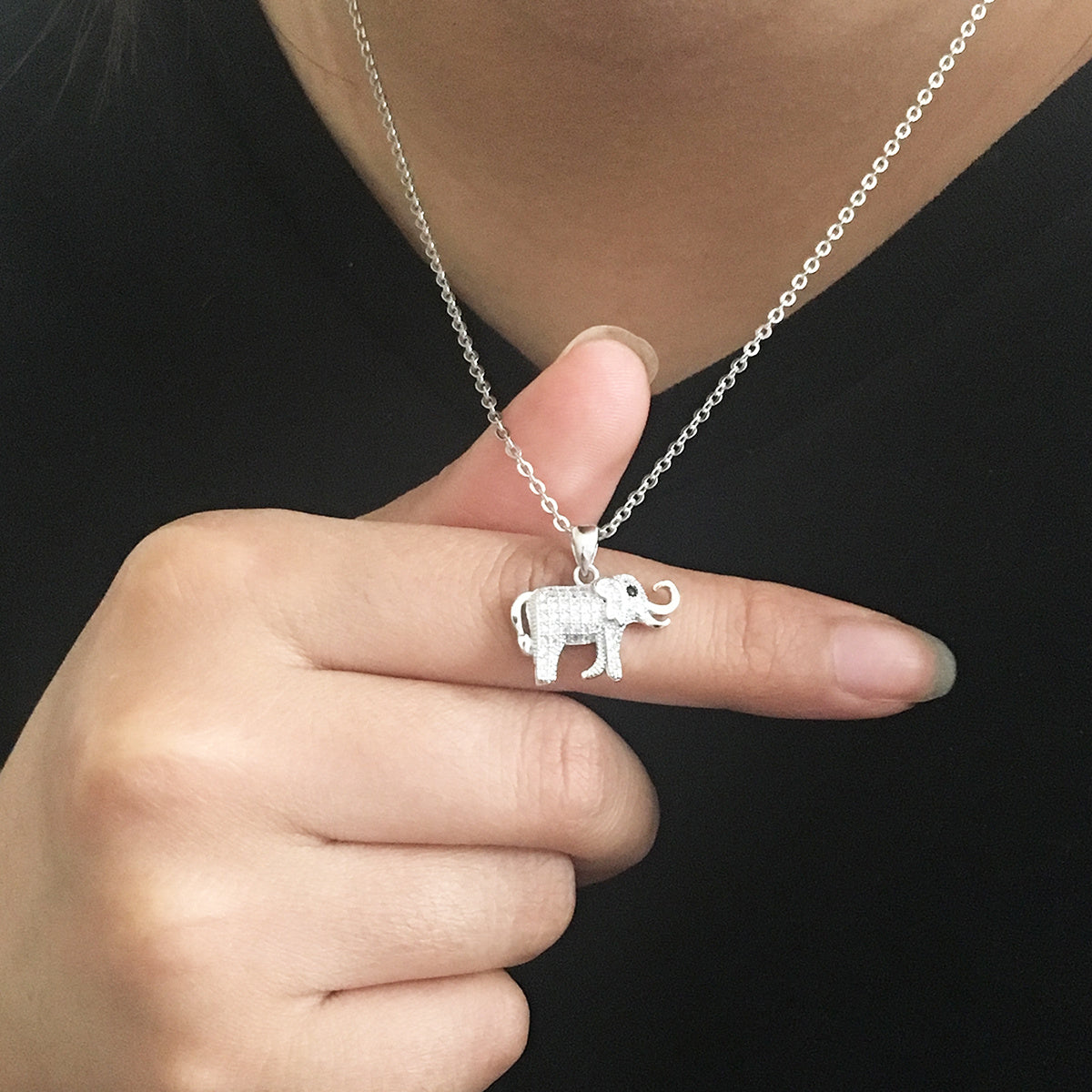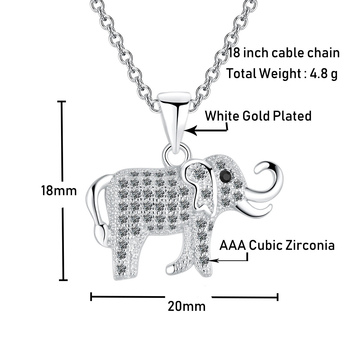 Emma Manor 14k White Gold Plated Cubic Zirconia Elephant Pendant Necklace