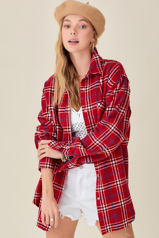 A classic and versatile button-down plaid shirt that offers both style and functionality. This shirt features a timeless plaid pattern and is designed with thoughtful pocket details. Its substantial thickness makes it perfect for wearing as outerwear, adding a layer of warmth and style to your outfit.