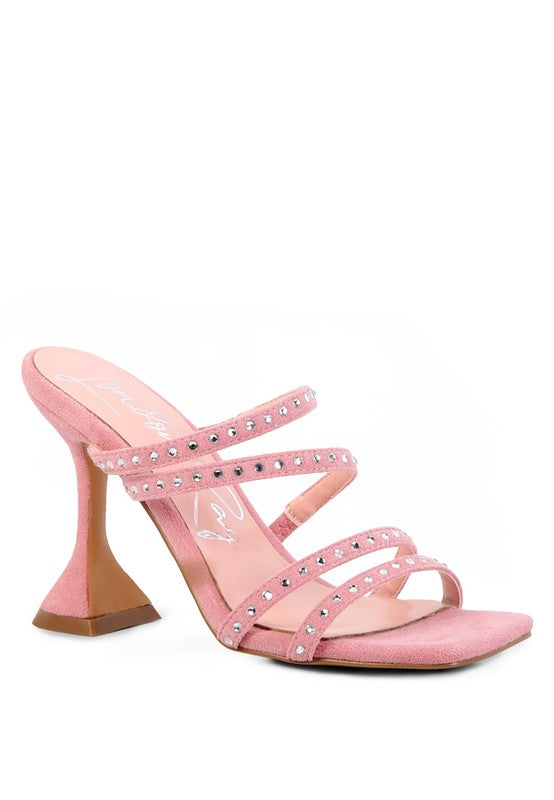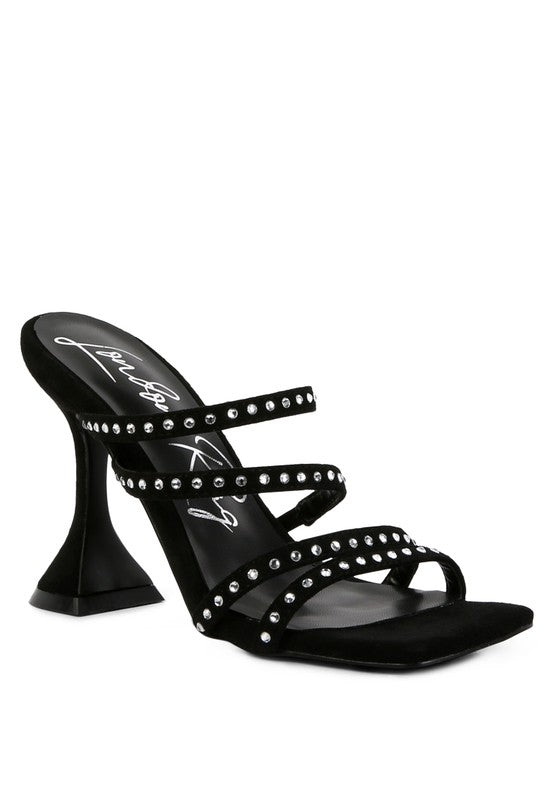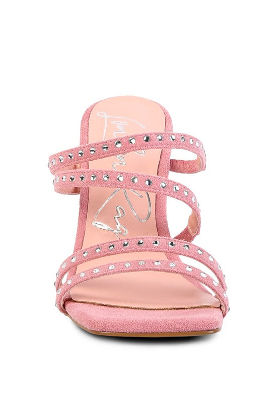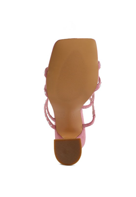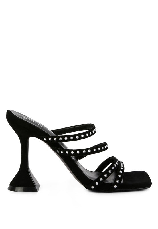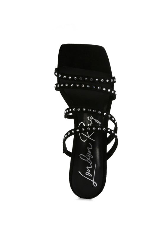 FACE ME STUDDED MID HEEL MULTI STRAP SANDALS