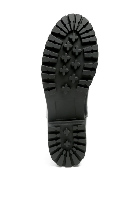 FROTHY BUCKLED ANKLE BOOT WITH CROC DETAIL