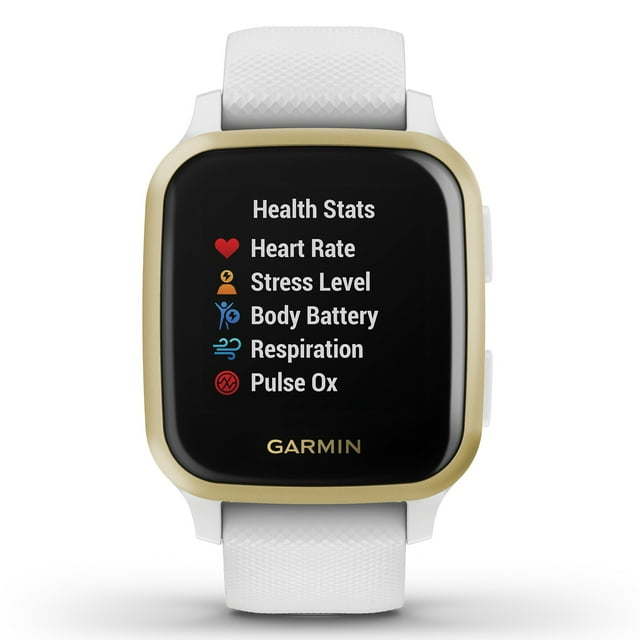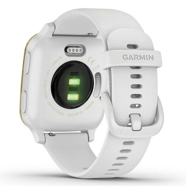 Now is the ideal time to move. Featuring a bright color display, the Garmin Venu Sq GPS smartwatch combines daily style with health monitoring and fitness features that inspire you to keep moving. Estimate your heart rate, sleep, stress, Body Battery energy levels, and so much more. Walk, run, ride, or choose from more than 20 preloaded apps for indoor or outdoor sports. Never miss a call or text with smart notifications delivered to your wrist (when paired with a compatible smartphone). Breeze through checkout lines and select transit systems with Garmin Pay contactless payments (with a supported payment network). Go longer between charges with up to 6 days of battery life. Swim, bike, run-do it all with a smartwatch that uses multiple satellite systems to accurately track your workouts. This smartwatch has a Light Gold Aluminum Bezel with White Case and Silicone Band.