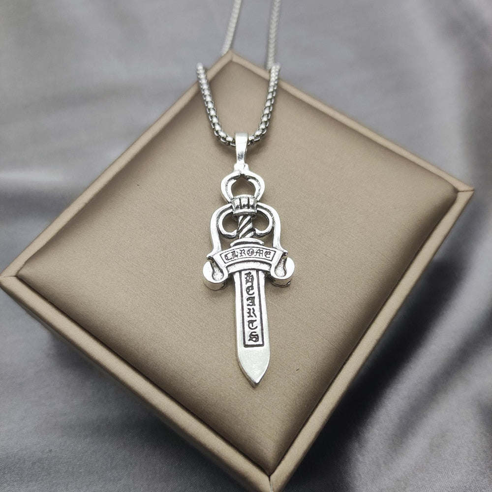 Mens Fashion Accessories Warrior Sword Stainless Steel Necklace.