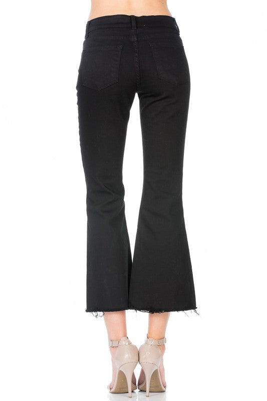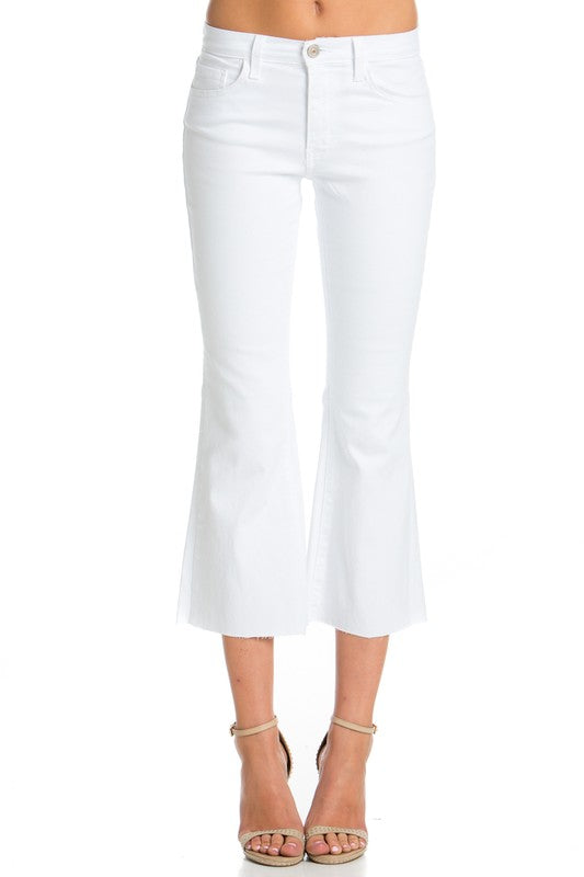 Mid-Rise Crop Flare Leg Denim Ankle Jeans pants