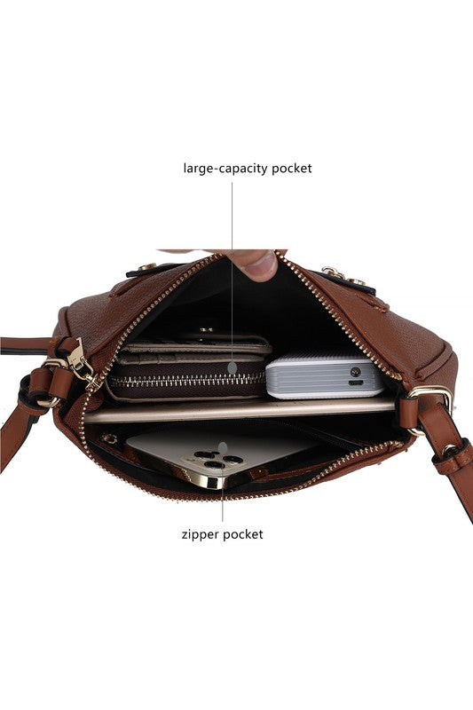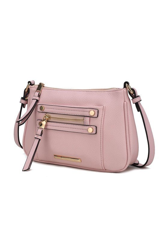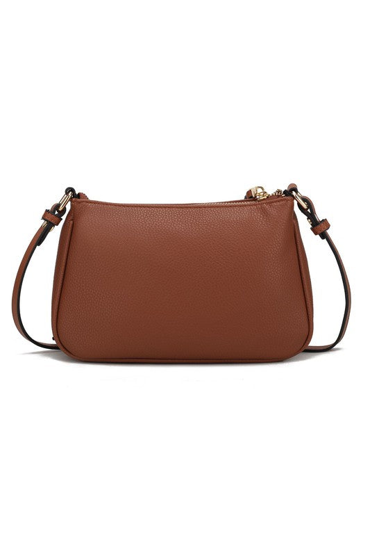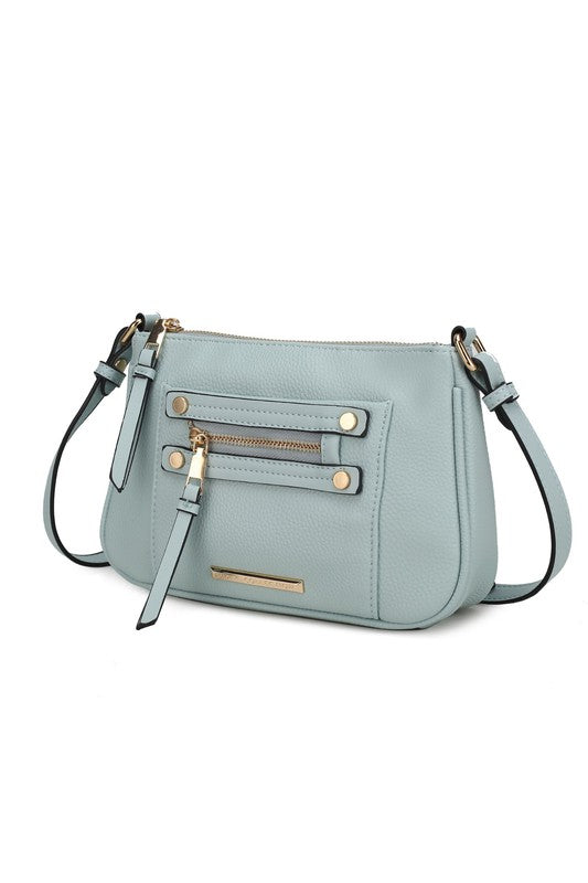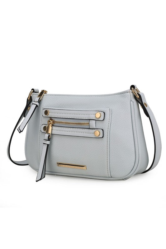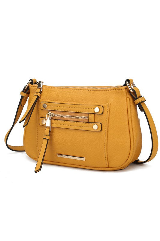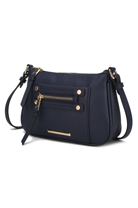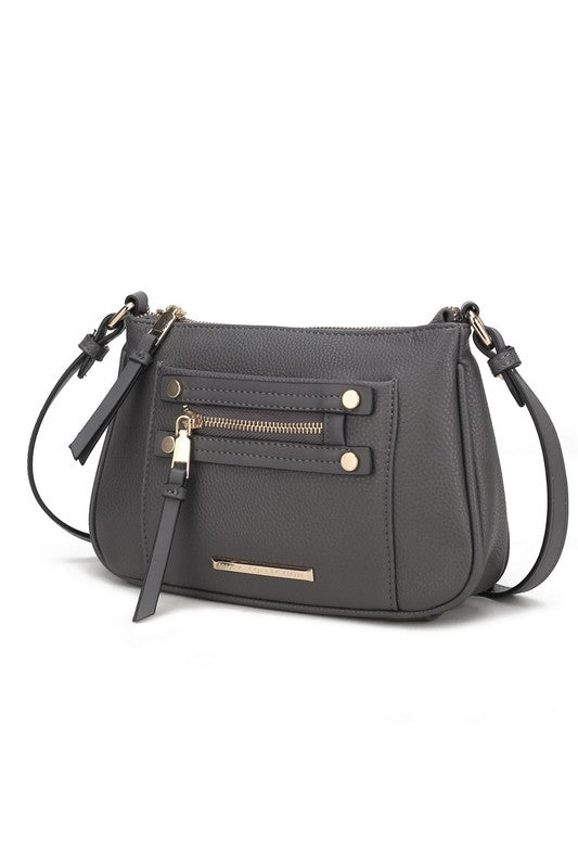 Crafted from soft pebble high-quality vegan leather and accented with gold-tone hardware, this crossbody is the perfect go-anywhere bag. Unzips it to reveal a fully lined interior with a wall zippered pocket. The Essie Crossbody has our plate emblem on the front, gold press studs, a decorative zippered front pocket, and a convenient front slip pocket to keep your small belongings. You will love to wear this hands-free style.