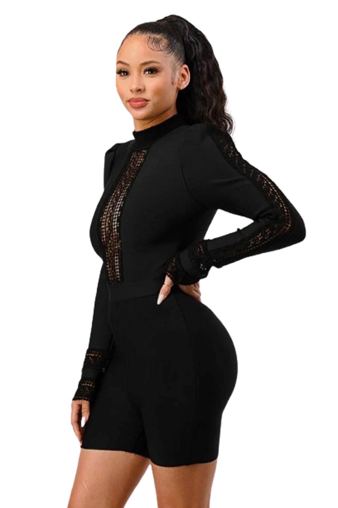 Embrace a look of sheer romance and confidence with our More Than Enough Lace Bandage Romper. This stunning ensemble is designed to showcase your figure with its form-fitting bandage construction, while the intricate lace detailing adds a layer of sophistication and allure. The romper silhouette combines the elegance of a dress with the comfort and freedom of shorts, making it a versatile choice for any occasion.