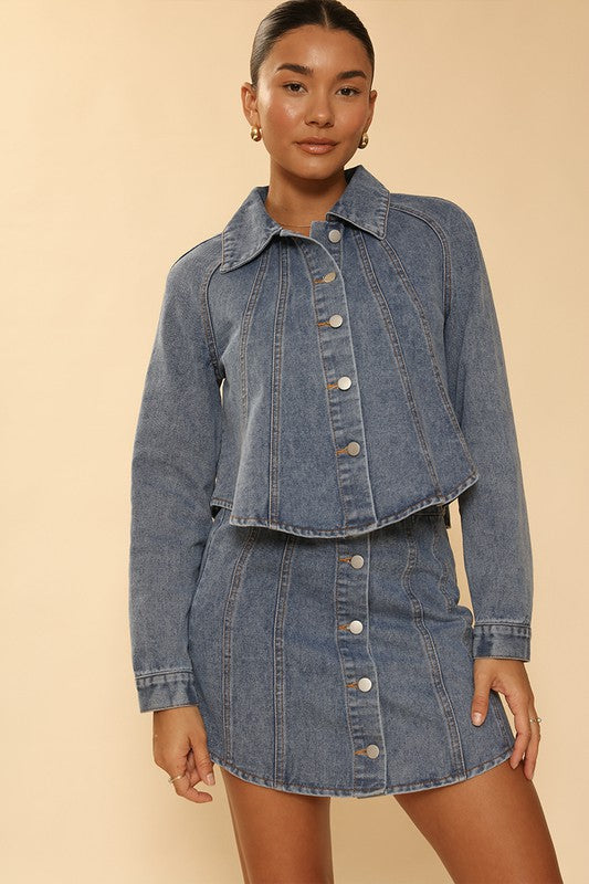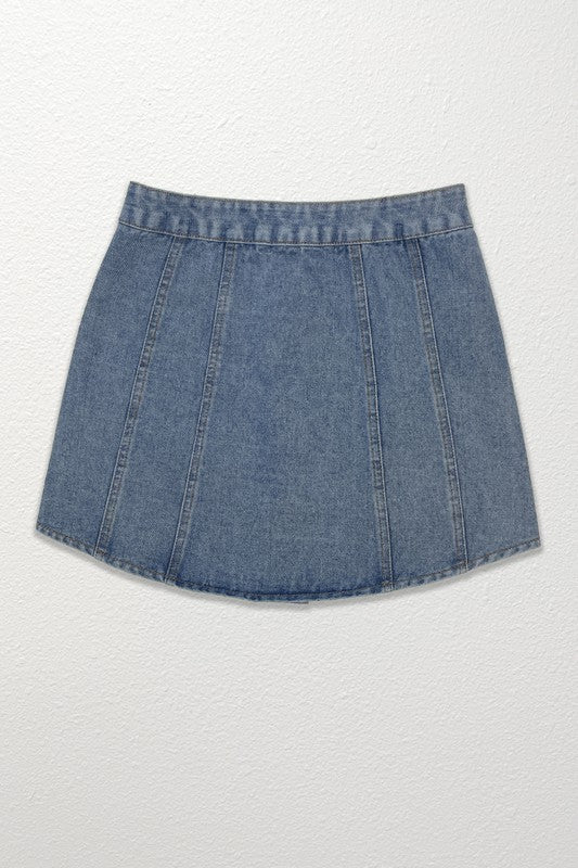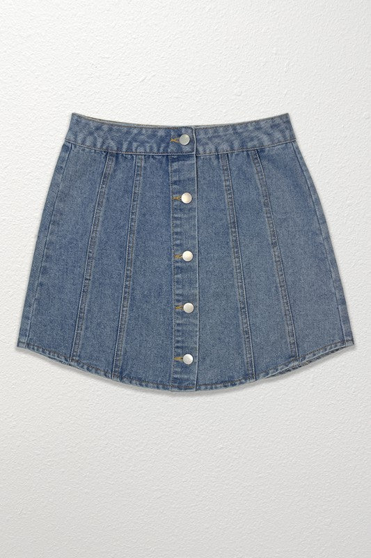 Experience comfort and style with our Rounded Hem Denim Skirt. The unique rounded hem adds a touch of femininity to the classic denim skirt design. The perfect addition to your wardrobe for a versatile and effortlessly chic look.