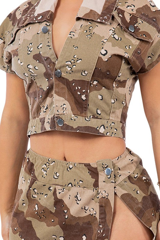 Sexy denim jacket with short sleeves, wrap skirt with bottoms Model size small 5'8" 36-26-38 Top Bust 36 inches, Top length 18 inches, Waist 25 inches, Hip 37 inches, Pant length 17