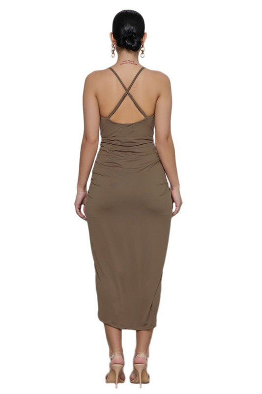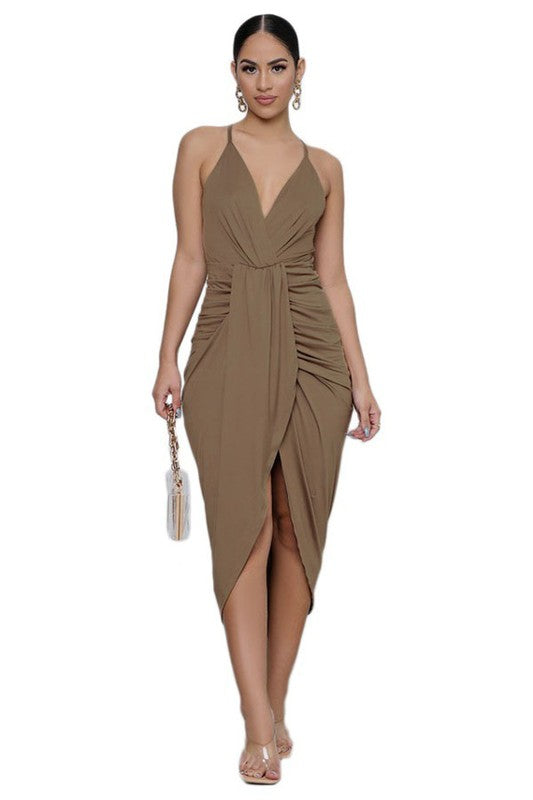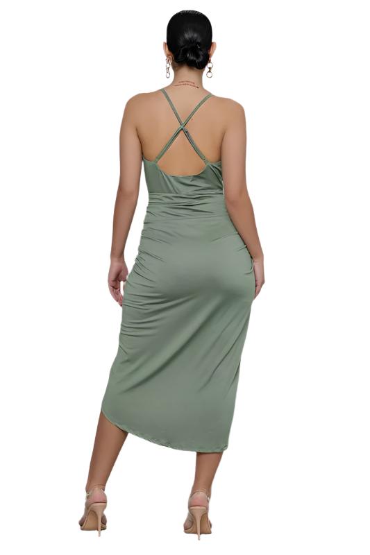 Details: V-neck, thin strip, back cross look, sleeveless, wrap style front look