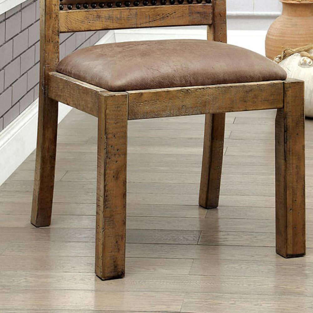 Simple Rustic Style Brown Fabric 2pcs Side Chairs Bold Sturdy Design Rustic Oak Solidwood Frame Nailhead Dining Chairs Furniture