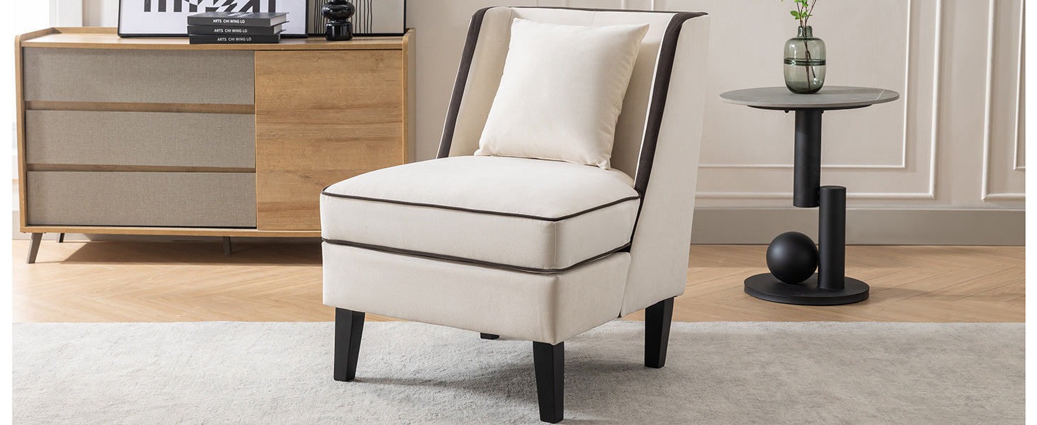 Velvet Upholstered Accent Chair with Black Piping, Cream and Black